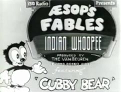 Aesop's Fables: Indian Whoopee* (1933) | Cubby Bear falls asleep while reading a history book and dreams about being part of the John Smith and Pocahontas story in this visually beautiful but pointless cartoon from Van Beuren. | |