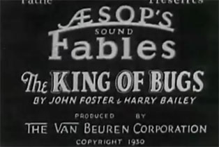 Aesop's Fables: The King Of Bugs* (1930) | Early sound cartoon with an all-insect cast. An eager-to-please young bugler inadvertently annoys the king during a parade and tournament, but redeems himself by rescuing the king's daughter, who's been abducted by a spider. | |