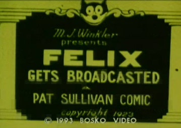 Felix The Cat: Felix Gets Broadcasted* (1923) | Felix spots a fisherman on his way to his fishing spot, and figures he can follow the guy and grab a quick lunch by stealing his catch. Video has green tint. | |
