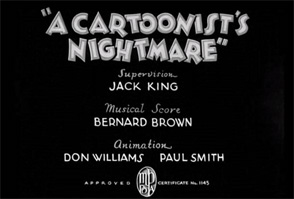 Looney Tunes: A Cartoonist's Nightmare* (1935) | A cartoonist falls victim to the very villains he has drawn. It's up to Beans the Cat to save the day. | |
