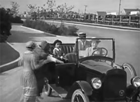 Abbott and Costello help an old lady get her car out of parallel parking.