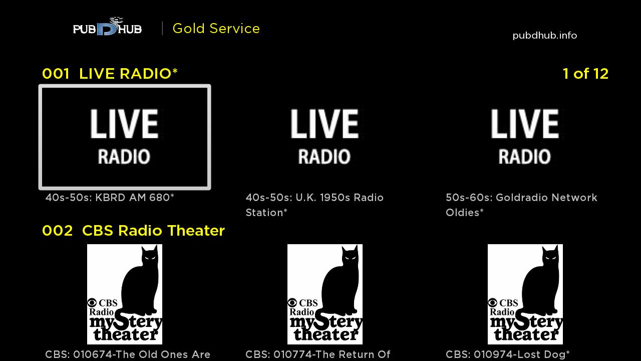 Catch a glimpse of some of the great classic programming that awaits you on Pub-D-Hub Gold! Keep in mind, this list is only a small sample of the giant library of content available and new content arrives several times throughout the year!
