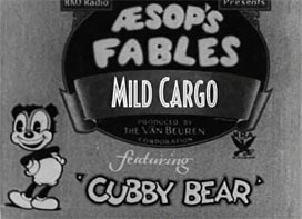 Aesop's Fables: Mild Cargo* (1934) | Brownie Bear leads a safari and, with his native guides, sets elaborate traps to bring 'em back alive. One ape keeps trying to get caught, but Brownie seems more intent on capturing mice! | |