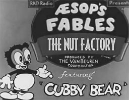 Aesop's Fables: The Nut Factory* (1933) | Dentures have gone missing at the Old Lady's Home, and Cubby is called in to investigate. After much sleuthing, he finds the answer: the squirrels have been using them to build a massive nut-processing factory, as nutcrackers and scoops. | |