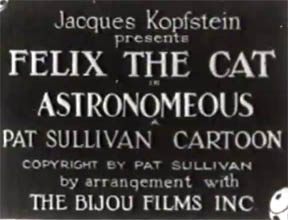 Felix The Cat: Astronomeous* (1928) | Felix is promising to find a better place for cats--and courtesy of his bow and arrow, establishes a rope climb straight to Mars! | |