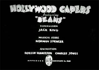 Looney Tunes: Hollywood Capers* (1935) | W.C. Fields enters the Warmer Bros. Studio. Beans tries to drive in, but the guard throws him and his car against a tree. Charlie Chaplin drives in, followed by Oliver Hardy on foot - but we see that it's really Beans in disguise. | |