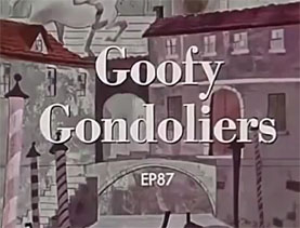 The New Three Stooges: S1E87-Goofy Gondoliers* (1965) | S1E87-Goofy Gondoliers: The Three Stooges are paid professionals in the tourist trade as they take passengers on gondoliers along the Grand Canal in Venice with mishaps occurring at a frequent rate. | |