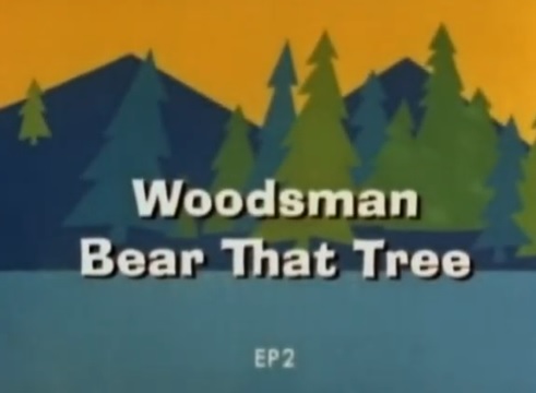 The New Three Stooges: S1E2-Woodsman Bear That Tree* (1965) | The three stooges get jobs as lumberjacks. They are sawing trees, as a bear covers his ears in his cave. | |
